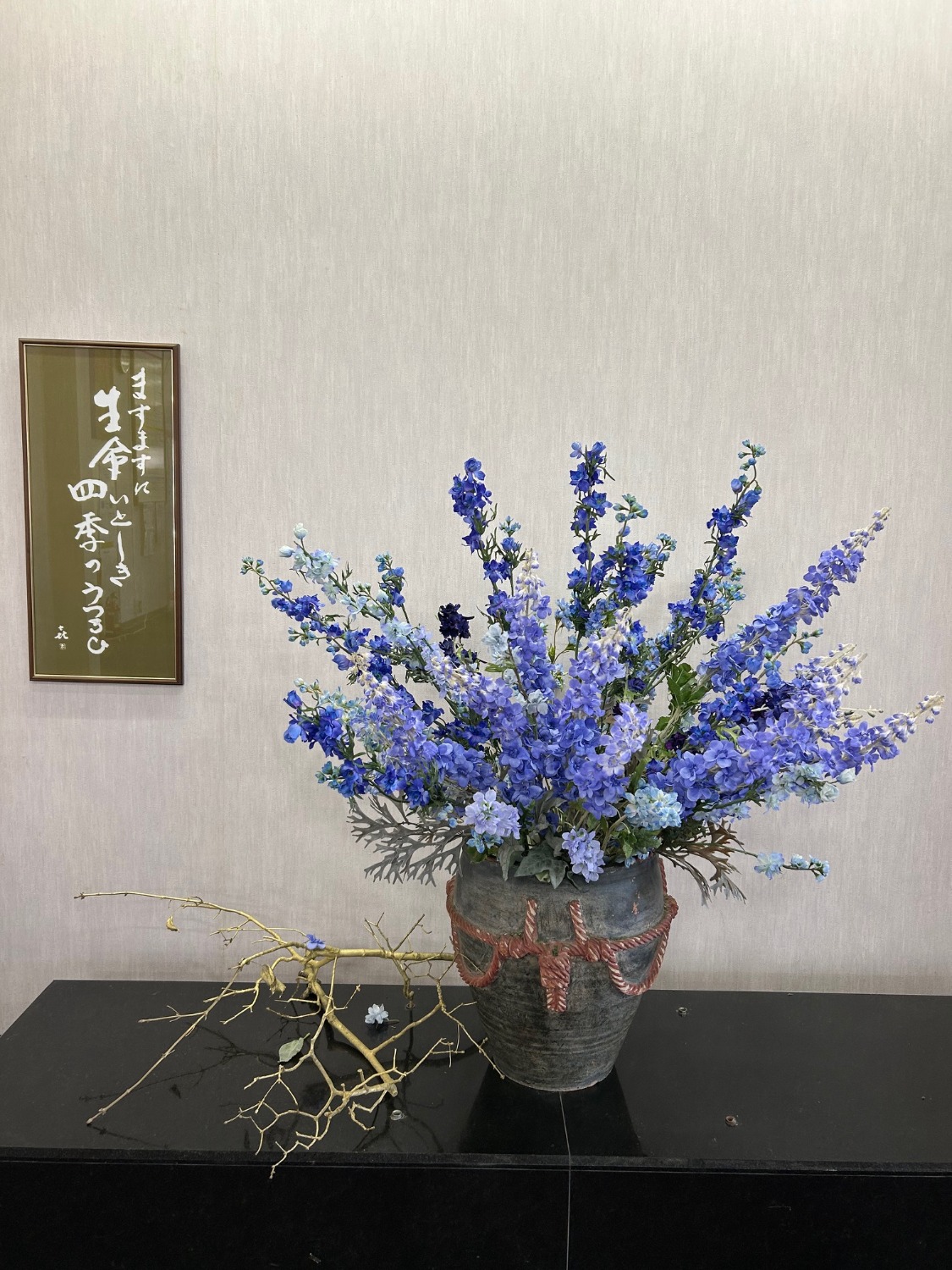 正面玄関を入ったところにフラワーアレンジメントを飾っています。赤とピンク:バラ黄色の枝:レンギョウ黄色の花:オンシジューム竹:黒竹来院の際は、是非ご覧になってください