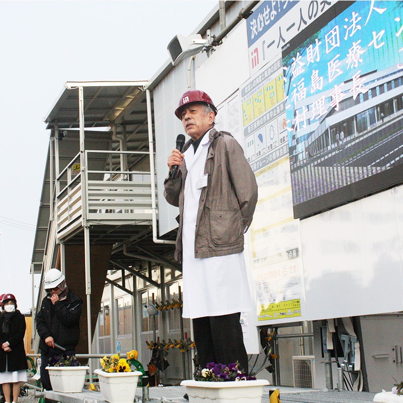 北福島医療センター新病院建設現場にて、理事長 木村秀夫が新年のあいさつを行いました