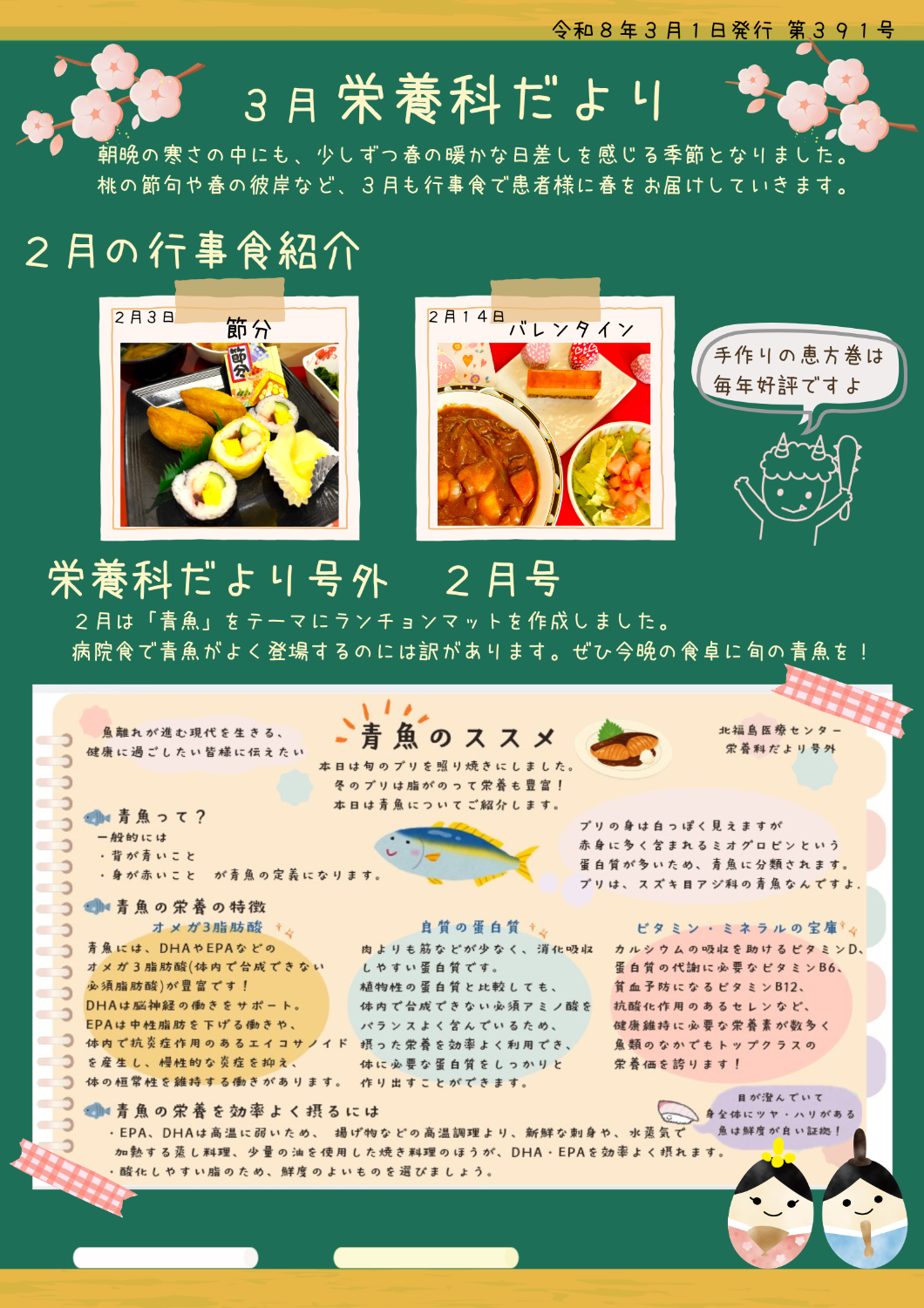 栄養科だよりR8年3月号ダウンロードしてご覧いただけます。