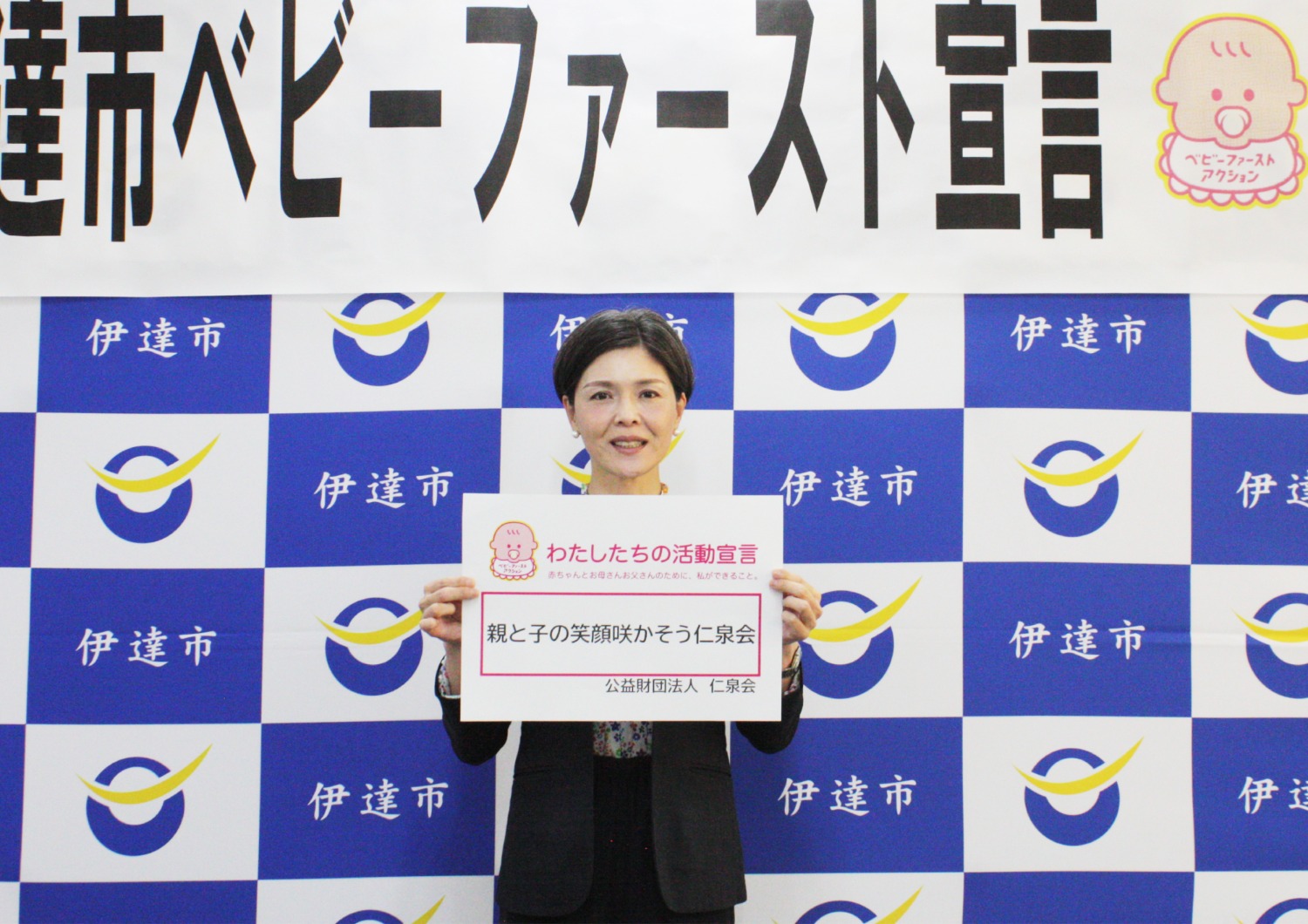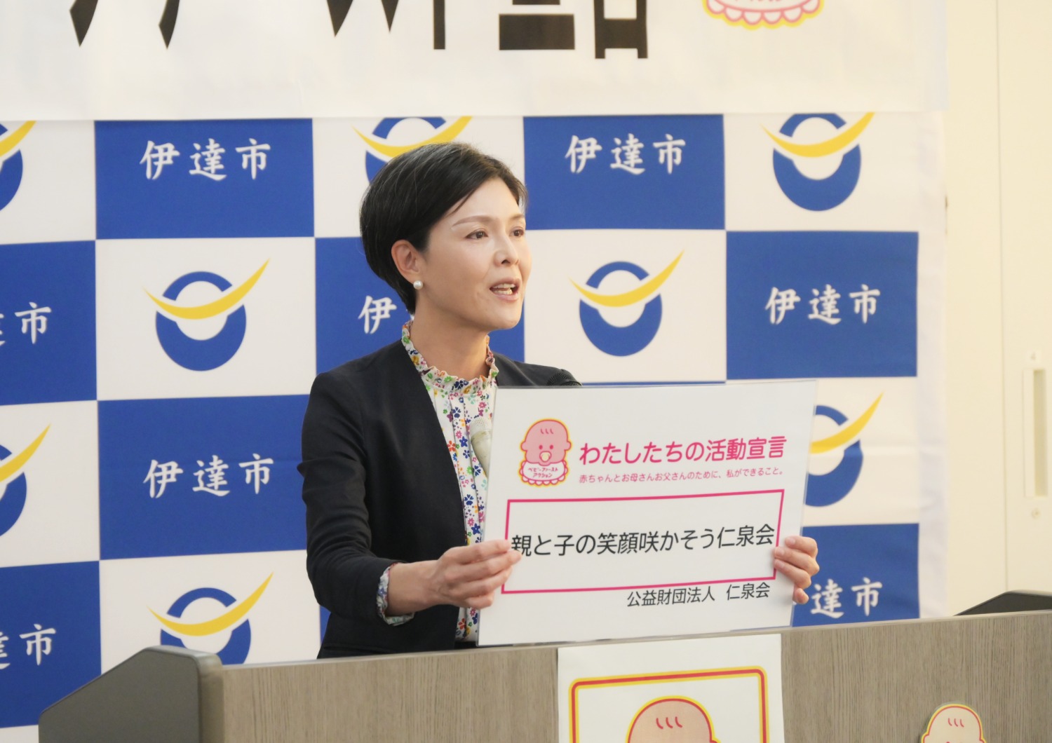 「ベビーファースト運動」活動宣言セレモニーに参加しました 令和7年10月8日(水)10時より、伊達市こども家庭センターにて、令和7年度「ベビーファースト運動」活動宣言セレモニーが開催されました。 当法人を代表して、宇佐美事務局長が「ベビーファースト宣言」および「アクションプラン」のスピーチを行いました。 宇佐美事務局長は、「笑顔を咲かそう!」の願いを込めて、花柄のブラウスで臨みました。 自治体や伊達市内の企業の皆様とともに、仁泉会全体で働く子育て世帯を支え、子どもたちの健やかな成長を見守ることのできる職場の実現を目指してまいります。 【活動宣言】 「親と子の笑顔咲かそう仁泉会」 当法人の経営理念である「笑顔を咲かそう」。 患者様・利用者様・ご家族、そして職員一人ひとりの「幸せ」という花を咲かせたい──。 その思いを込め、この理念の一節を引用し、活動宣言といたしました。 【アクションプラン】 ① 子育て世帯の健康を見守ります。 地域住民の健康保持・増進および社会福祉の向上に寄与する公益財団法人として、引き続き地域とともに取り組んでまいります。 ② 育児期の柔軟な働き方を推進します。 令和7年10月1日より、育児期の柔軟な働き方を実現するための措置として、「養育両立支援休暇」を導入しました。 <ベビーファースト運動とは> 「ベビーファースト運動」は、子どもをより産み育てやすい社会の実現を目指して、公益社団法人日本青年会議所が2021年よりスタートさせた全国的な取り組みです。 企業・自治体・個人が一体となり、妊産婦をはじめ子育て世代が安心して暮らせる社会環境の醸成を目指しています。