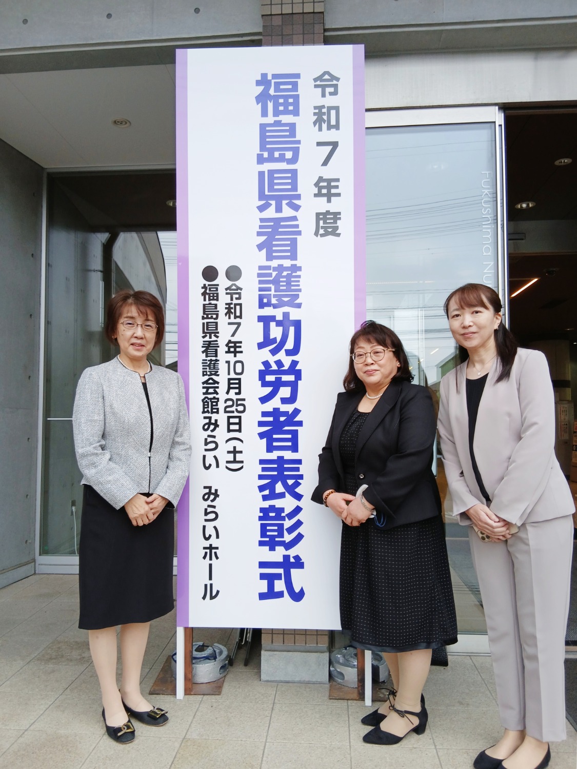令和7年10月25日(土)、福島県看護会館みらいにて、 「看護の日」制定35周年を記念した福島県看護功労者表彰式が執り行われました。 本表彰は、看護職として長年にわたり保健・医療・福祉の発展に貢献し、 その功績が特に顕著である方々を讃えるものです。 このたび、当法人からは3名の職員が表彰を受けられました。 受賞された皆様の、これまでの看護の発展へのご尽力が高く評価され、 今回の受賞は当法人にとりましても大変名誉なことです。 職員一同、心よりお祝い申し上げます。 今後も、今回の受賞を励みに、地域医療と看護のさらなる向上に努め、 地域社会への貢献を続けてまいります。