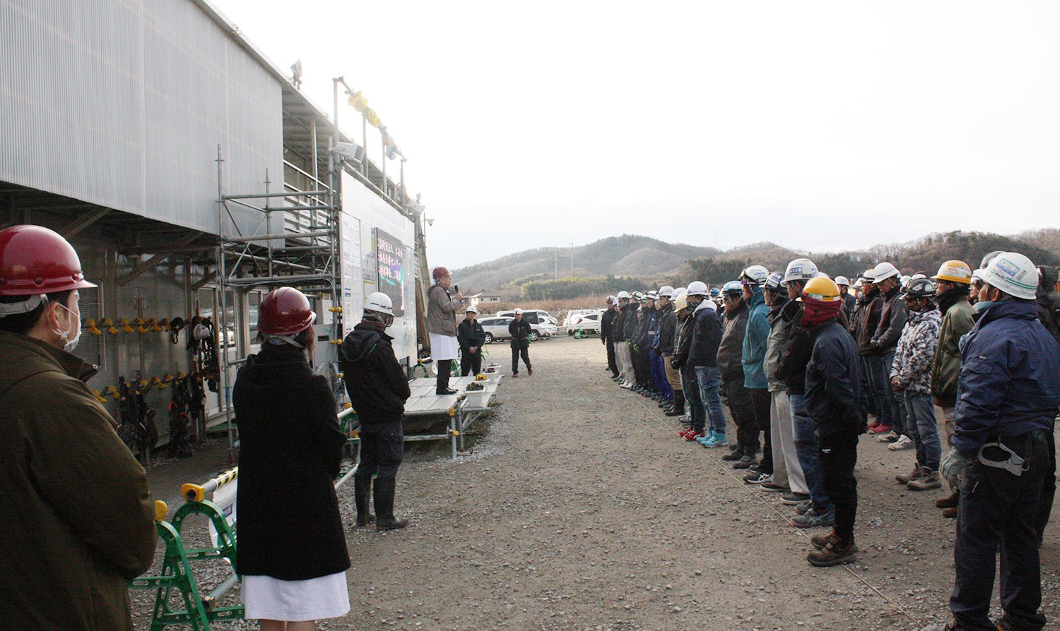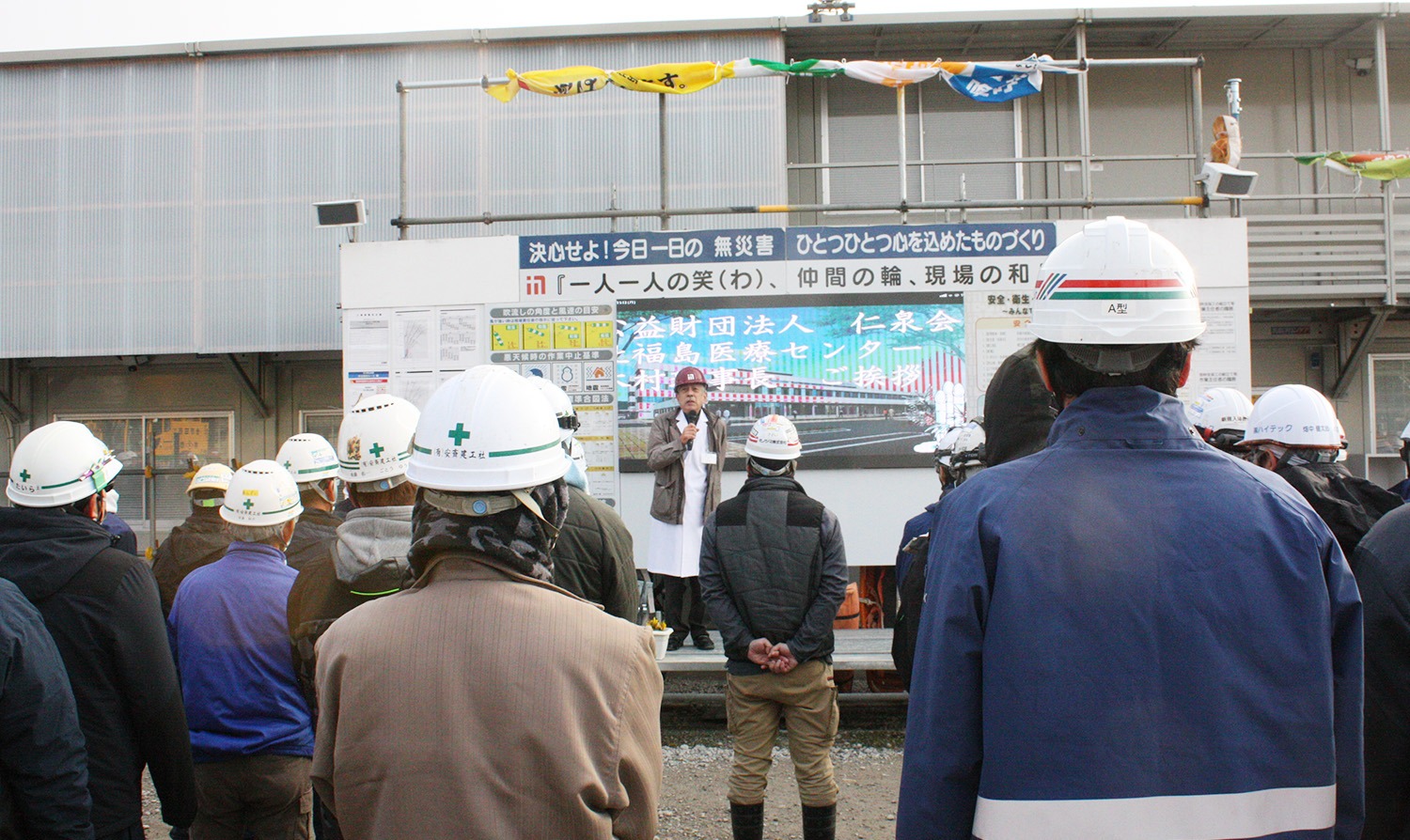 2026年1月5日、北福島医療センター新病院建設現場において、新年のあいさつを行いました。 当日は、医療法人仁泉会 理事長の木村秀夫より、日頃より新病院建設に携わっている関係者の皆さまへ感謝の言葉が述べられるとともに、新しい一年のスタートにあたり、今後の病院づくりに対する思いや決意が語られました。 北福島医療センター新病院は、地域医療のさらなる充実と安心・安全な医療提供体制の構築を目指し、建設を進めております。 仁泉会では、今後も地域の皆さまに信頼される医療の実現に向け、引き続き取り組んでまいります。