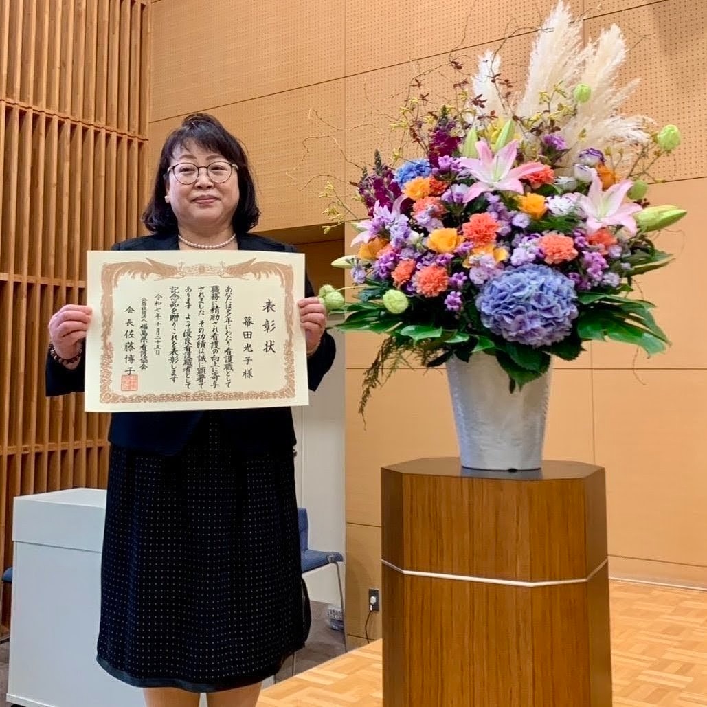 令和7年10月25日(土) 福島県看護会館みらいにおいて、「看護の日」制定35周年記念福島県看護功労者表彰式が行われました。 当法人からは3名の職員が受賞し、桃花林介護部に所属する看護師1名が「優良看護(永年)職員表彰」を授与しております。 引き続き、質の高い看護を目指して取り組んで参ります。